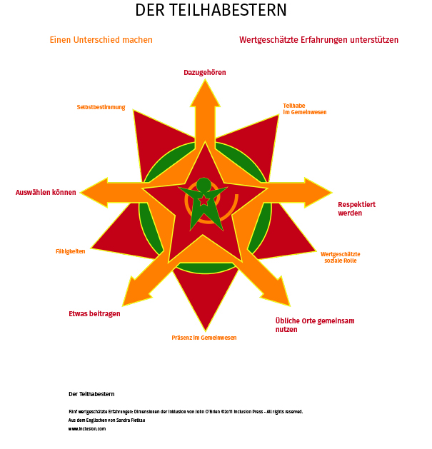 Bei BALANCE richten wir uns nach dem "Teilhabestern". Das bedeutet, dass jeder Mensch in der Gesellschaft wertvolle Erfahrungen machen, Beiträge leisten und sich mit anderen Menschen verbinden kann.