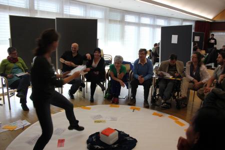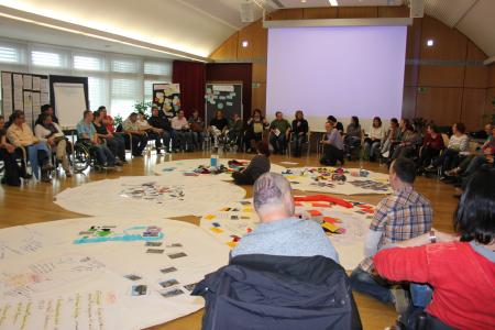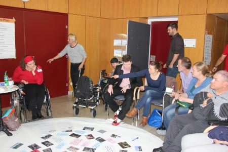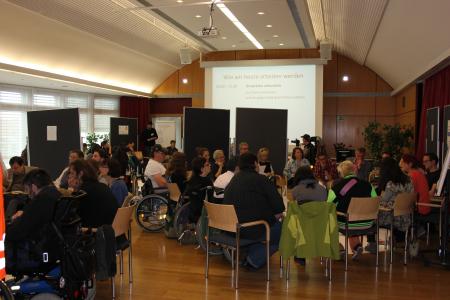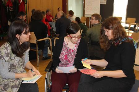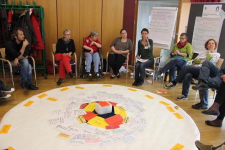 Darüber kamen beim Workshop viele Leute miteinander ins Gespräch: Bewohner:innen, Mitarbeiter:innen, Angehörige, Selbstvertreter:innen, Peer-Berater:innen, Sachwalter:innen, Politiker:innen, Fördergeber.